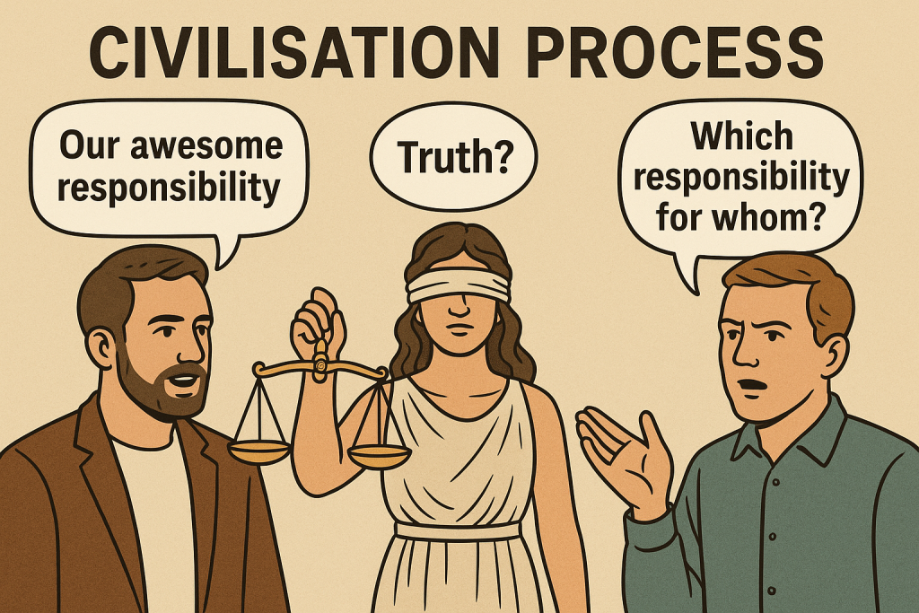 Civilisatie gebruik ik hier niet in de klassieke zin van “beschaving”, maar in een socio-psychologische betekenis, vergelijkbaar met hoe Norbert Elias erover schrijft in Über den Prozeß der Zivilisation. Civilisatie is het geheel van gedeelde overtuigingen, normen, waarden en gedragingen die mensen in een samenleving vanzelfsprekend vinden. Het bepaalt niet alleen hoe we ons gedragen, maar ook welke uitspraken we als “wijs” of “waar” ervaren.